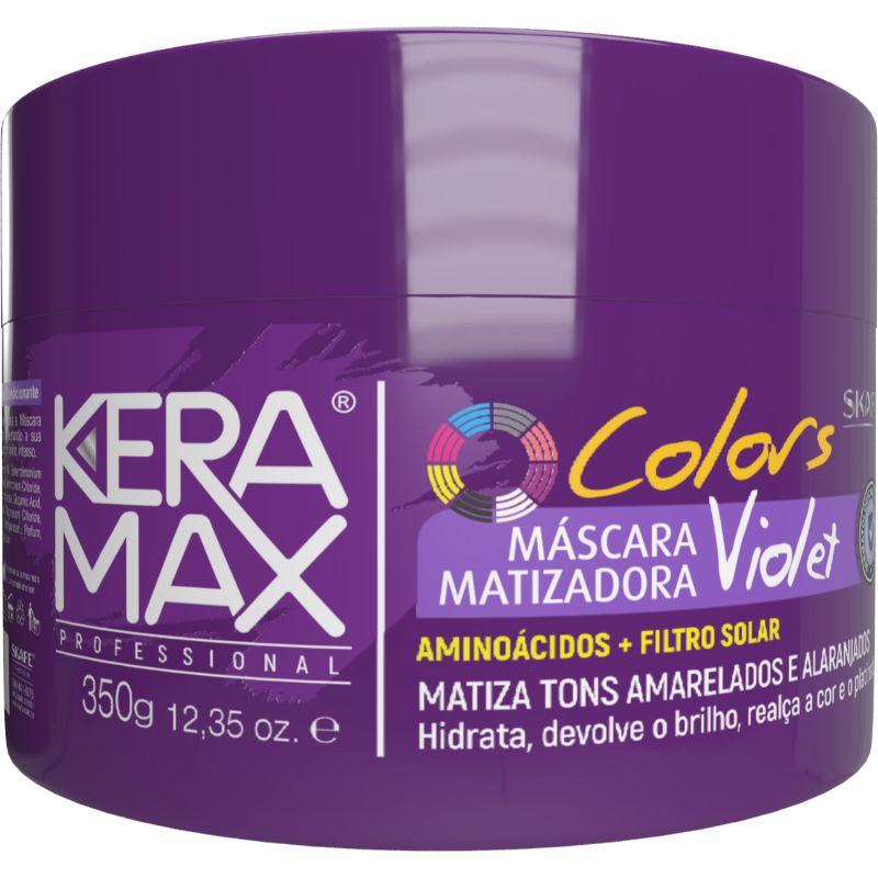 A Máscara Matizadora Violet Keramax hidrata e, ao mesmo tempo, intensifica e reaviva a cor dos fios loiros naturais e tingidos. Especialmente desenvolvida com aminoácidos e pigmentos especiais e sem oxidantes, não modifica nem agride a estrutura capilar. Resultado: fios hidratados, nutridos e com brilho intenso.
