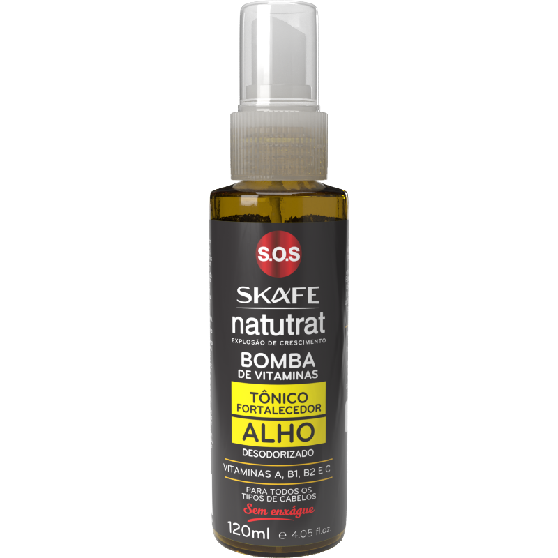 O Tônico de Alho Natutrat S.O.S Bomba de Vitaminas age no combate à queda, à oxidação dos fios e no controle da caspa.