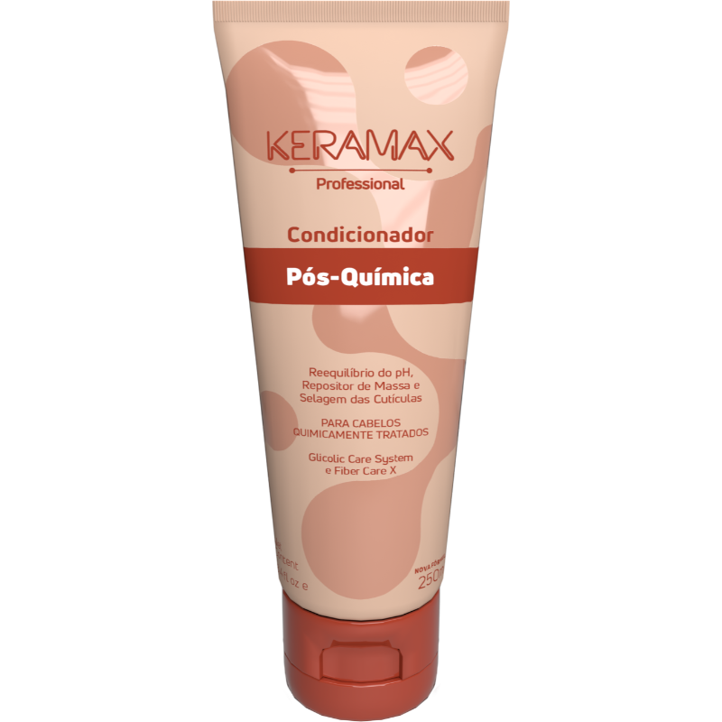 O Condicionador Keramax Pós-Química possui ação restauradora, sendo ideal para cabelos com perda de massa, oleosidade na raiz e ressecamento nas pontas após sucessivos procedimentos químicos e mecânicos. Disciplinante, é enriquecido com Glicolic Hair System e Fiber Care X, ativos que promovem a reconstrução e o reequilíbrio do pH, combatendo a porosidade e recuperando a elasticidade e o brilho.