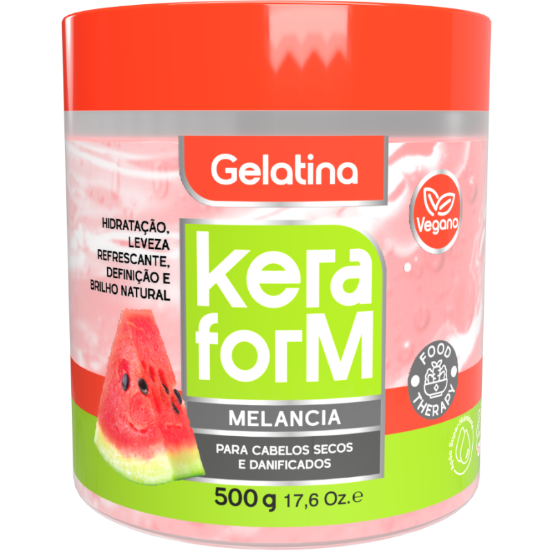 A Gelatina Keraform Melancia será a sua melhor parceira para as mais diversas finalizações. Com extrato de Melancia garante ação hidratante e antioxidante para todas as curvaturas, além de um efeito memorizador e alto poder de fixação sem ressecar. Seja para um maior resultado de definição ou para a criação de misturinhas e penteados de arrasar, o close é + do que certo!