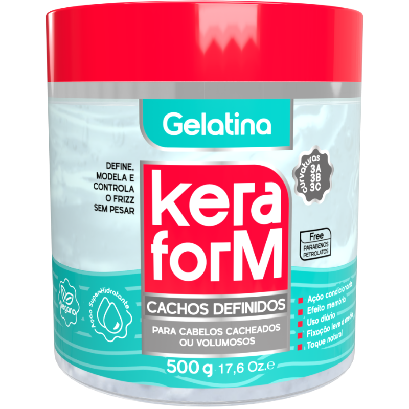 A Gelatina Keraform Cachos + Definidos será sua melhor parceira para as mais diversas finalizações. com colágeno, Quinoa Pró e D-Pantenol, intensifica a curvatura dos fios com efeito memorizador e oferece alto poder de fixação sem ressecar. Seja para um maior resultado de definição ou para a criação de misturinhas e penteados de arrasar, o close é + do que certo!